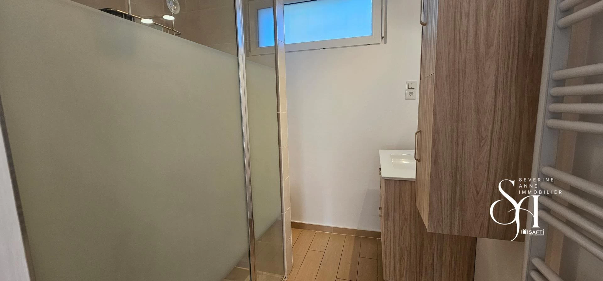 Au RDC d'une entrée, une buanderie, cuisine aménagée ouverte sur séjour avec poêle à granulé ramoné en 2025 et accès à une terrasse exposée sud, une chambre, salle d'eau avec wc, une grande cage d'escalier pouvant accueillir un bureau.